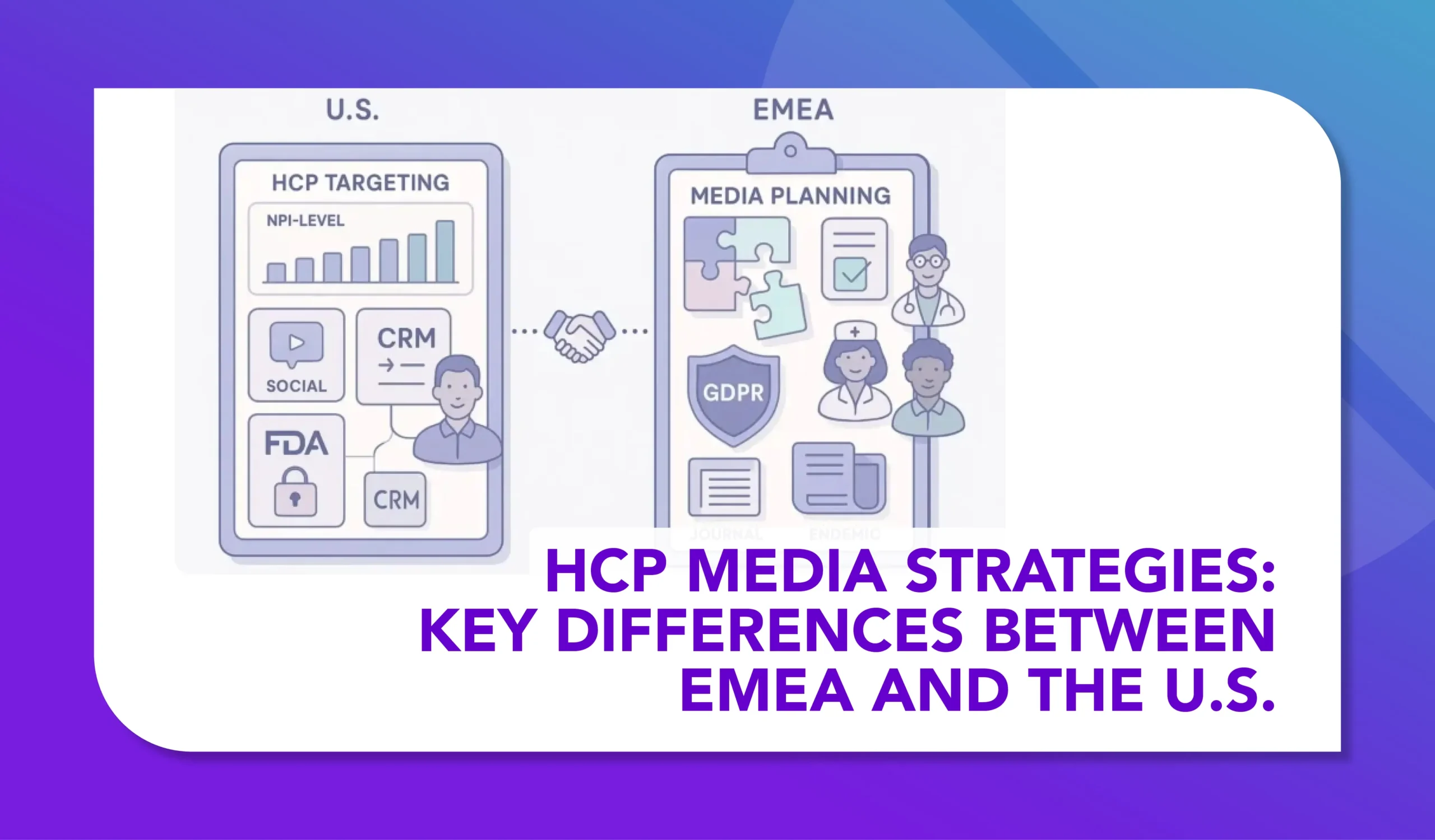 Explores how HCP media strategies must be adapted across regions. Reviews channel maturity, regulatory impact, and physician engagement behaviors, highlighting why media mix and omnichannel approaches look different in the U.S. versus EMEA.