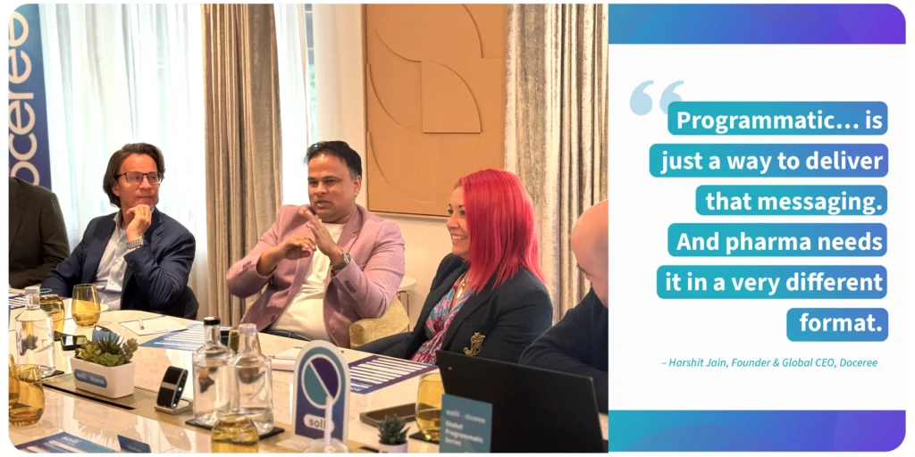 Depth, not just reach, matters. Participants agreed that medical engagement is rarely about quick impressions. As Pasquale Monteleone said, “Short form is great… but long form… you’re getting then half an hour worth of engagement if it’s of a high quality”. Programmatic, despite a misnomer of it being high-volume display advertising, it is very capable of driving that kind of content – congress data, MOA explainers, expert videos – to reach the right clinician when they are ready for it, and to measure whether it resonated.