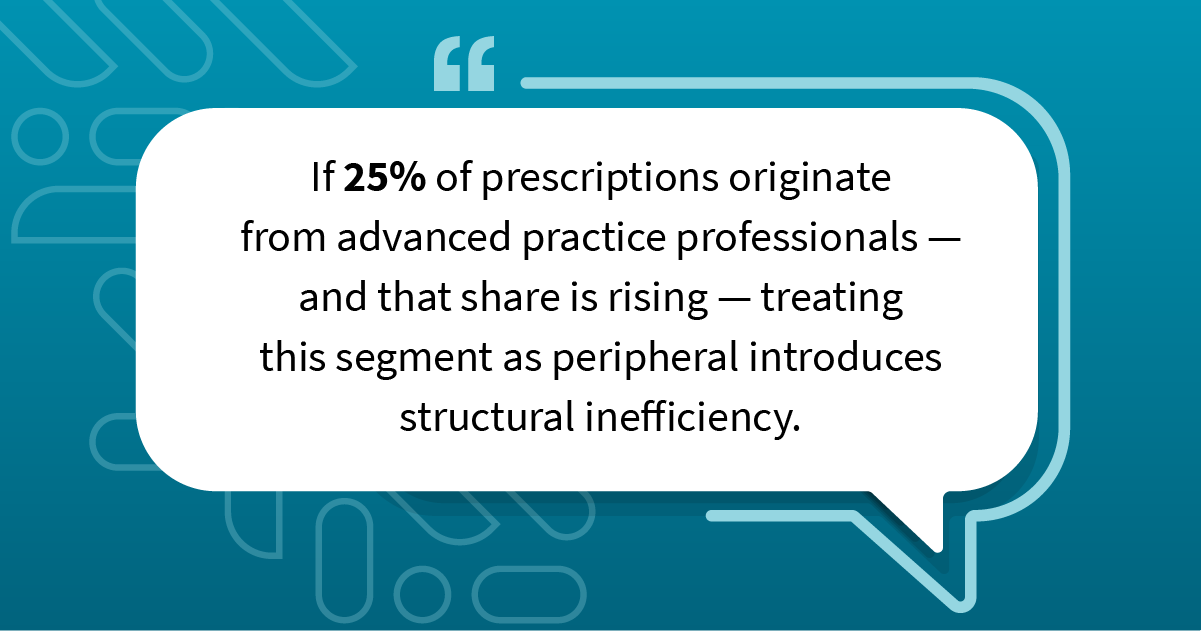 Precision still matters. But if we ignore where prescribing authority is actually shifting, we risk capping growth without even realizing it. If 25% of prescriptions originate from advanced practice professionals — and that share is rising — treating this segment as peripheral introduces structural inefficiency.
